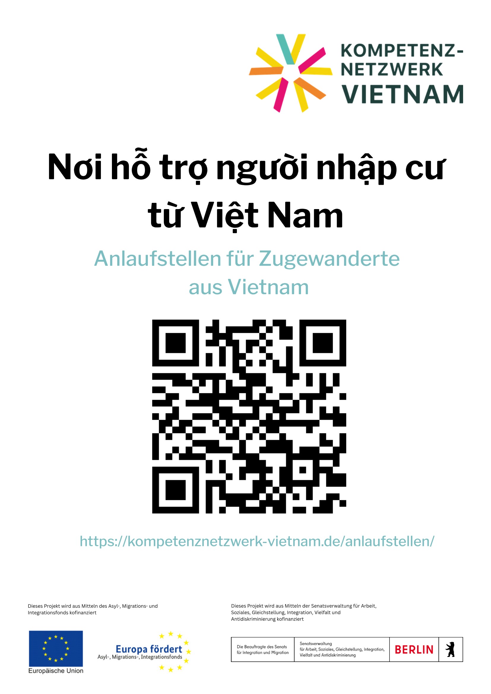 Auch der QR-Code zur vietnamesischsprachigen Datenbank der Anlaufstellen ist enthalten.