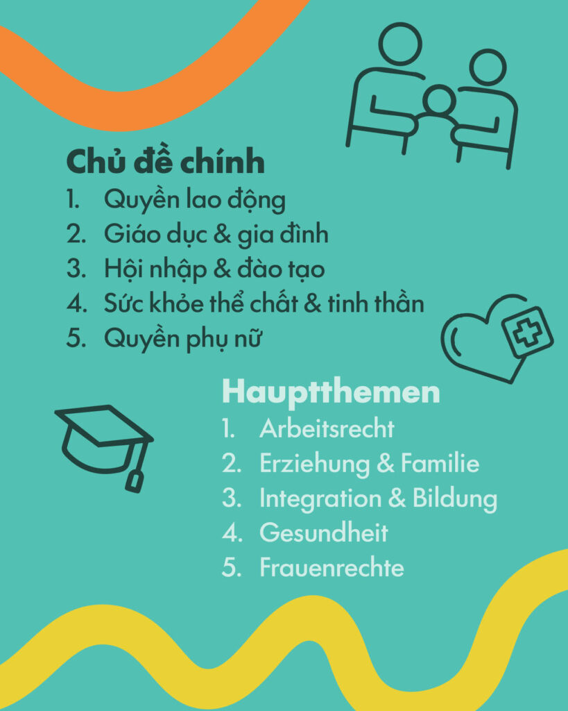Am 03. März startet die erste Informationskampagne zum Thema Arbeitsrecht. Einen Monat lang werden auf Facebook und Instagram vietnamesischsprachige Reels, Grafiken und Textbeiträge veröffentlicht, die praktische Tipps zum Schutz vor Kündigungen und zur Durchsetzung von Arbeitsrechten geben – Informationen, die im Alltag wirklich weiterhelfen. Auch auf der Website werden die Medien zeitnah veröffenlicht.