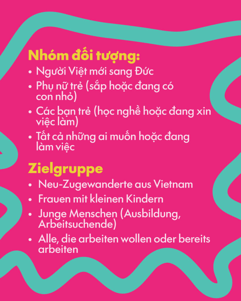 | Informationskampagne | Follow us Seit Anfang März läuft unsere erste vietnamesischsprachige Infokampagne zum Thema Arbeitsrecht auf Facebook und Instagram, um Zugewanderte aus Vietnam auf ihre Rechte als Arbeitenehmer:innen und Auszubildende aufmerksam zu machen. Ab April finden Sie weitere Medien auf unserer Webseite. Zum Instagram Expert:innenrunde Neue Zuwanderung Vietnam erfolgreich durchgeführt Am 12.03.2026 fand die erste Sitzung der Expert:innenrunde Neue Zuwanderung mit rund 50 Teilnehmenden aus Migrationsarbeit, Berufsausbildung, Öffentlichen Gesundheitdiensten und der Verwaltung sowie Engagierten aus der vietnamesischen Community statt. Die Beiträge der Personalvermittlungsagentur Alma und der Initiative „Vietnamesische Pflegekräfte in Deutschland“/German Connect Deutschland machten deutlich, dass es durchaus bewährte Konzepte für die erfolgreiche berufliche Integration von Azubis aus Vietnam gibt. Es bleibt jedoch weiter eine Herausforderung für die Berufsschulen, Betriebe und vor allem für die Projekte in der Sozialen Arbeit, wie junge Menschen, die nicht von seriösen Agenturen vermittelt und begleitet werden, hierzulande aufgefangen werden können.Die nächste Sitzung wird voraussichtlich als Arbeitstreffen im kleineren Kreis stattfinden. Kompetenznetzwerk Vietnam zu Gast bei QE&U Das Projektteam war zu einem Austausch zu Gast bei QE&U gGmbH am Standort Josef-Orlopp-Straße 92 in Berlin-Lichtenberg. Neben dem Projekt AusbildungsAnker, ein Beratunsgprojekt zur Unterstützung von Azubis, ist dort der Standort von KMUtT. Azubis, die sich nach einer Kündigung neu orientieren wollen, können hier bei der Suche nach einem passenden Betrieb (KMU) beraten und begleitet werden. Das KMUtT verfügt – vor allem in handwerklichen und industrietechnischen Berufen, in denen bisher nur wenige vietnamesische Azubis zu finden sind – über ein großes Netzwerk. Der vietnamesischsprachige Berufsberater der Beratungsstation bei demselben Träger, Herr Phuong Dong Phan, sowie unser Beratungsteam begleiten Ratsuchende auf Wunsch beim Erstkontakt zu den Projekten. Es gehört zur Aufgabe des Projekts, vorhandene Programme und Projekte für Zugewanderte aus Vietnam (mehr) nutzbar und zugänglich zu machen. Wir freuen uns auf die weitere Vernetzung. Neu in der Datenbank „Anlaufstellen für Zuewanderte aus Vietnam“ KMUtT (s. oben) und ARRIVO BERLIN (s. unten) wurden neu in die Onlinedatenbank aufgenommen. Beide Angebote sind vor allem für junge Menschen attraktiv, die über die Familienzusammenführung nach Deutschland gekommen sind und hier bisher keine klare berufliche Perspektive entwickeln konnten. Hier gehts zur Datenbank. Infoveranstaltung „Kinderschutz: Verantwortung der Eltern & Rolle des Jugendamts“ (auf Vietnamesisch) | 17.04.2026 Die monatliche Infoveranstaltung im April behandelt das Thema „Kinderschutz“. Herr Huy Vu – Kinderschutzfachkraft von VIET-Family – erläutert u. a. die Kriterien zur Einschätzung einer Kindeswohlgefährdung und wie Eltern „Ärger“ mit dem Jugendamt vermeiden können. Weitere Infos hier.Anmeldung bis zum 14.04. an: amif@abw-berlin.deZeit: 14:00-17:00 Uhr, Ort: FLAT-FAMILY, Franz-Jacob-Str. 16-18, 10369 Berlin |