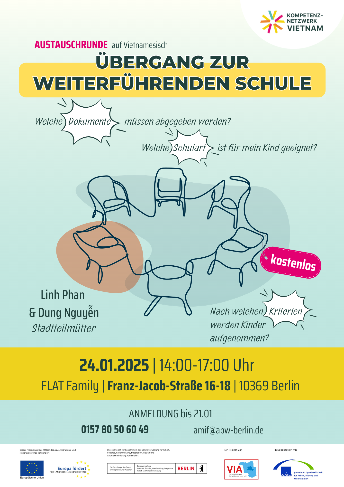 Die kommende Veranstaltung zum Theme „Übergang zur weiterführenden Schule in Berlin“ richtet sich an vietnamesischsprachige Eltern.