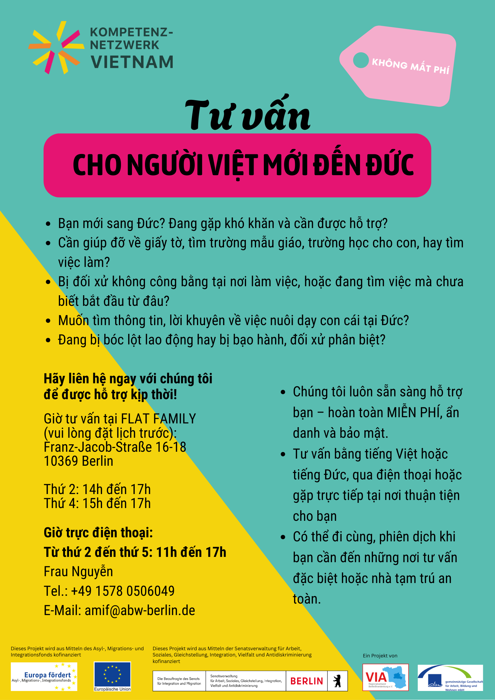 • neu in Deutschland sind und eine Orientierung für den Anfang (Deutschlernen, Kita/Schule, Job, Behördenangelegenheiten) benötigen,